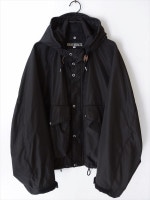 それぞれが単品として使えるほど作り込まれたショートパーカとスタンドカラーコートを重ねたコートです。 ショートパーカは立体的なフード、大容量のフラップポケット、ベルクロタブつきの袖など、機能にフォーカスしたデザインが特徴となっています。 スタンドカラーコートもシックな印象でありながらも、ラグランスリーブや深いスリットなど、快適性を重視した構造です。 表地はソロテックスを用いた先染めの撥水オックスフォード、裏地は同じくソロテックスのストレッチ生地を採用しています。 <素材> 表地 ポリエステル100% 裏地 ポリエステル100% この商品についてのブログ記事はこちら→http://euphonica.yokohama/blog/archives/20461 <サイズ> M ショートパーカ/ 着丈60cm 身幅65cm 裄丈86cm コート/着丈110cm 身幅63cm 裄丈86cm L ショートパーカ/ 着丈65cm 身幅68cm 裄丈89cm コート/着丈115cm 身幅66cm 裄丈89cm