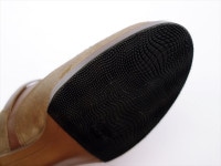 マッケイ製法で縫い付けられたレザーソールの前足部に初めからハーフラバーが貼ってあります